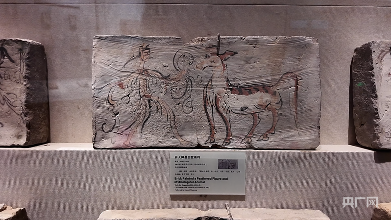 羽人神兽图壁画砖(央广网记者 魏晋雪 摄)
