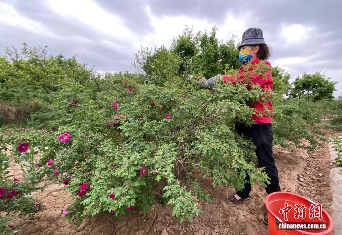 甘肃兰州市永登县,花农采摘苦水玫瑰花。(资料图)高展 摄