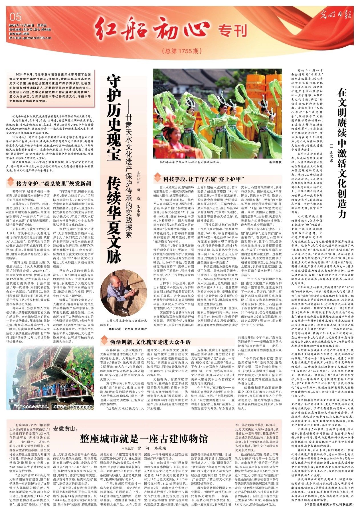 伏羲庙和麦积山石窟静静矗立,不仅见证着祖先独具匠心的创造,也见证着当代人守护传承的坚守。祖先的智慧与创造,正以崭新的姿态走向未来,永励后人。