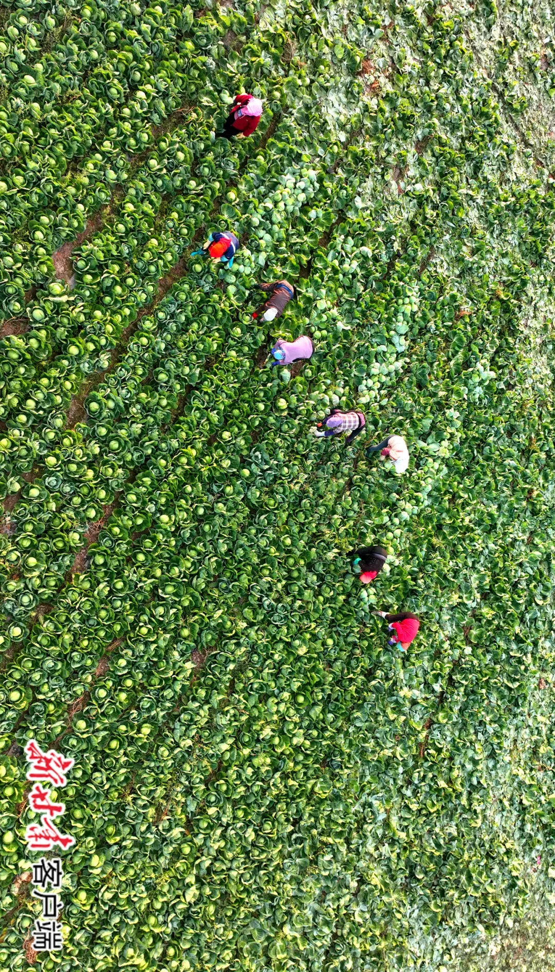 张掖市甘州区千亩蔬菜基地,菜农正在采收、精选、包装甘蓝,准备运往粤港澳大湾区市场销售。新甘肃·甘肃日报通讯员 杨潇 /摄