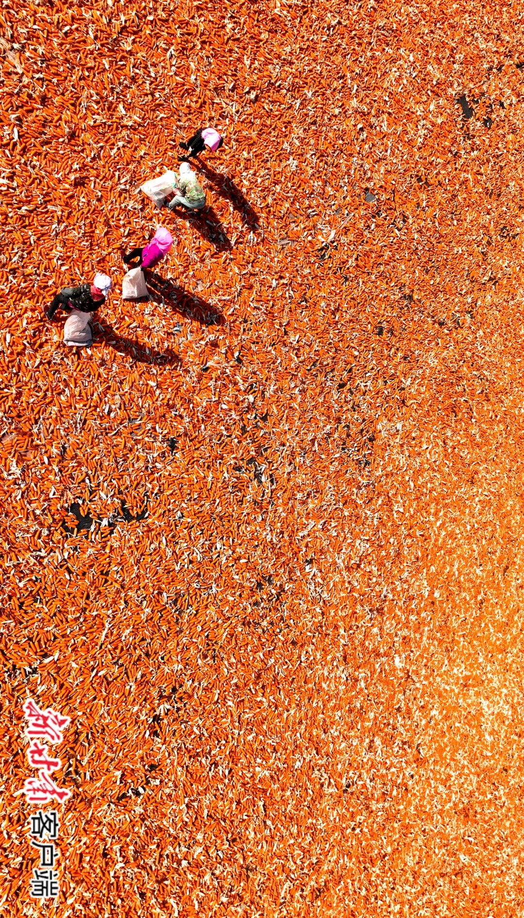 村民正在张掖市甘州区明永镇明永村4100亩玉米制种基地抢收、晾晒、拣杂。新甘肃·甘肃日报通讯员 杨永伟/摄
