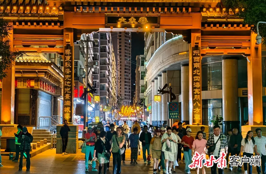 夜晚的兰州,时尚与活力并存,游客在兰州大众巷星光夜市游览。新甘肃·甘肃日报记者 郁婕/摄
