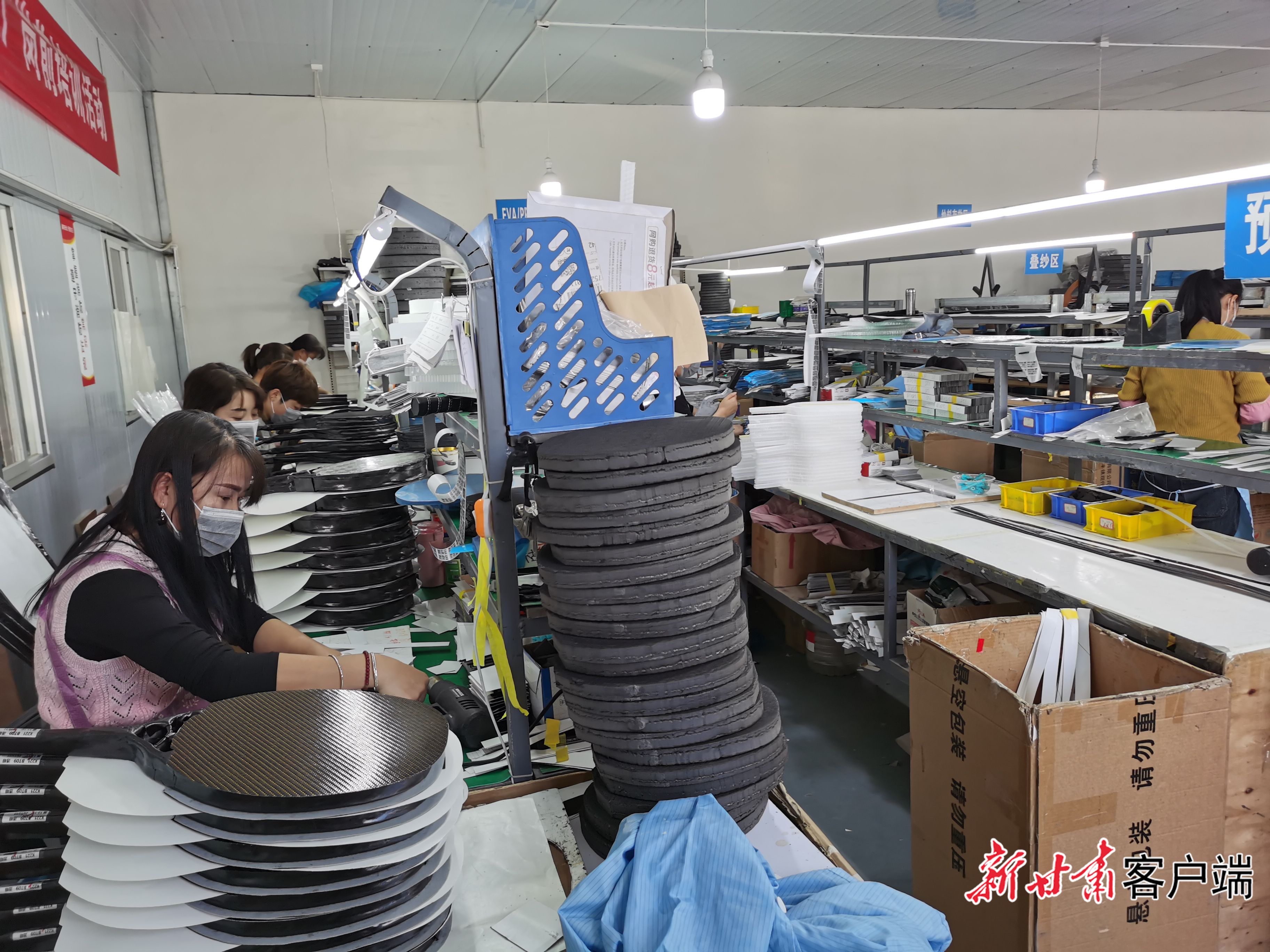 工人正在制作球拍。新甘肃·甘肃日报记者 王占东