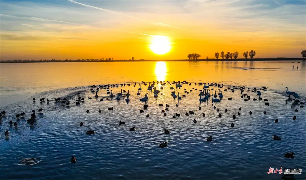 与广袤湿地、澄澈湖水、苍茫苇荡相映成趣