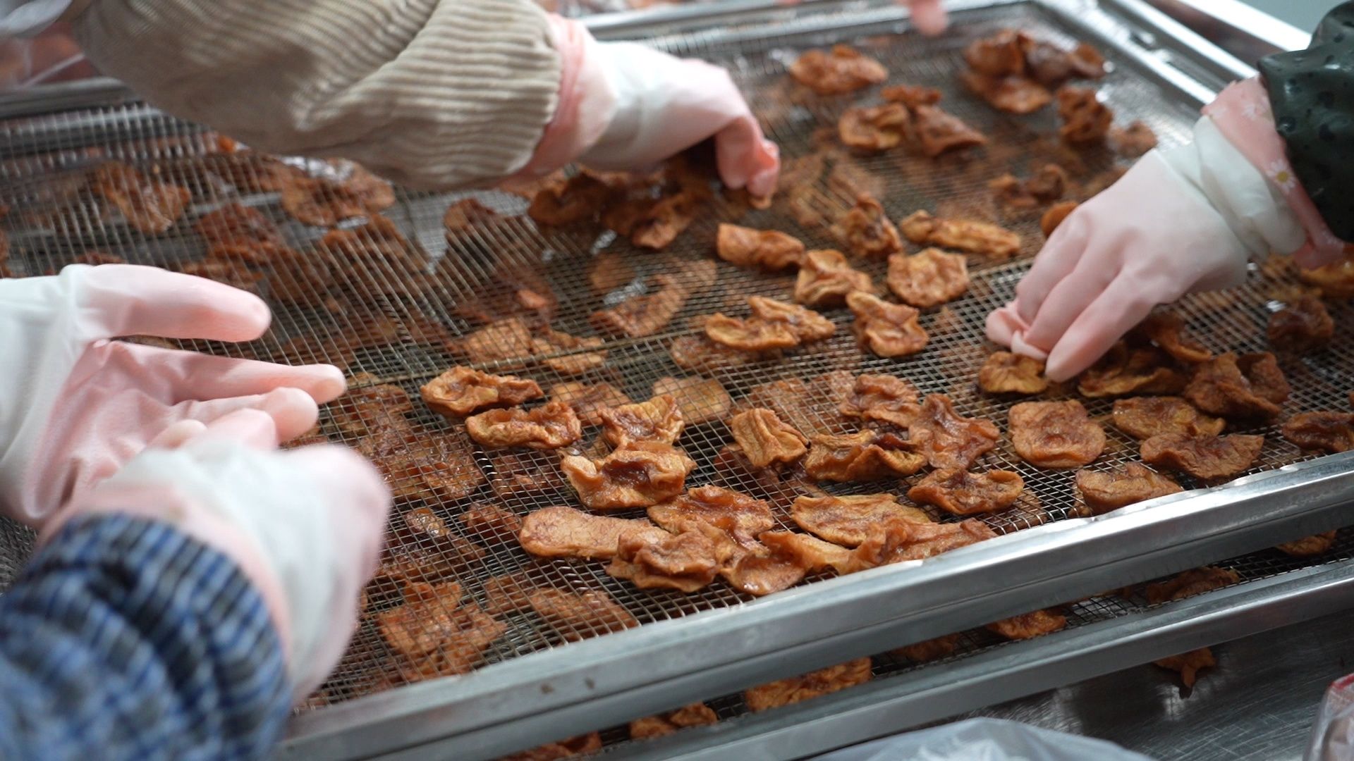 “我们企业深耕苹果干深加工品类,截至目前,公司收购了500吨鲜苹果,预计做成苹果干10万到12万斤。我们不仅把鲜果变成苹果干,更是让静宁苹果的价值翻倍,让果农的辛苦有更高的回报。”静宁甘果萃深加工负责人朱金强说道。