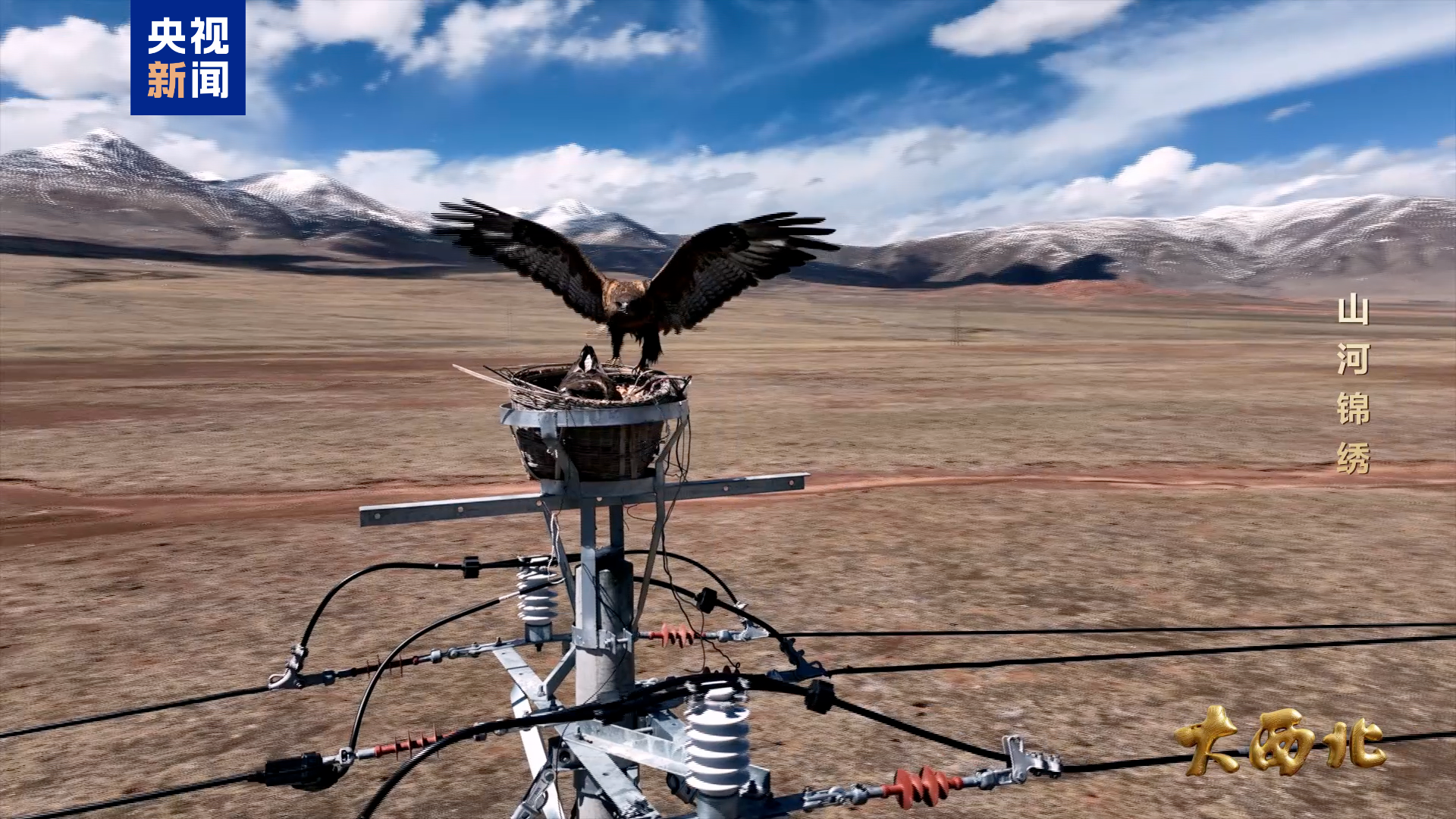 玉树,国家二级保护动物——大鵟,在人工搭建的鸟巢中哺育它们的后代。