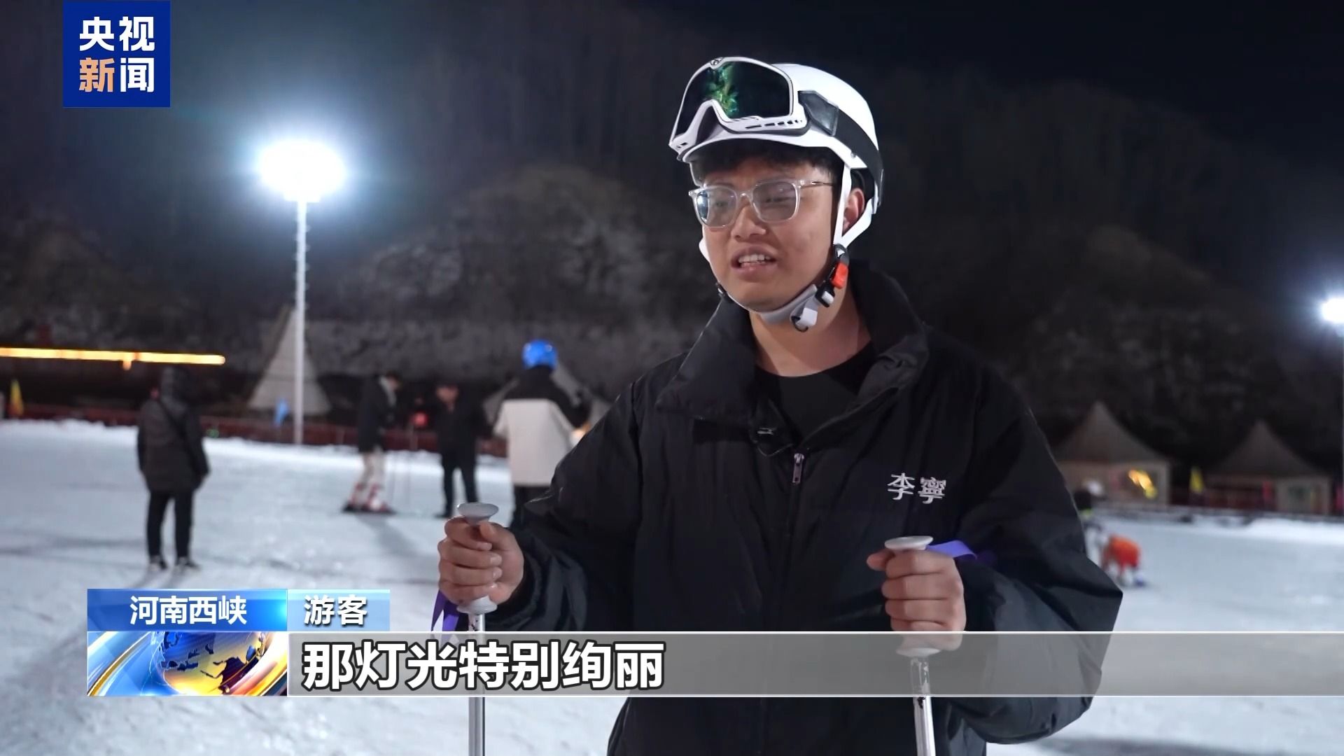游客:今天体验了一把夜间滑雪,从中级道滑下来,灯光特别绚丽,坡面特别平顺,滑得特别开心,特别爽。