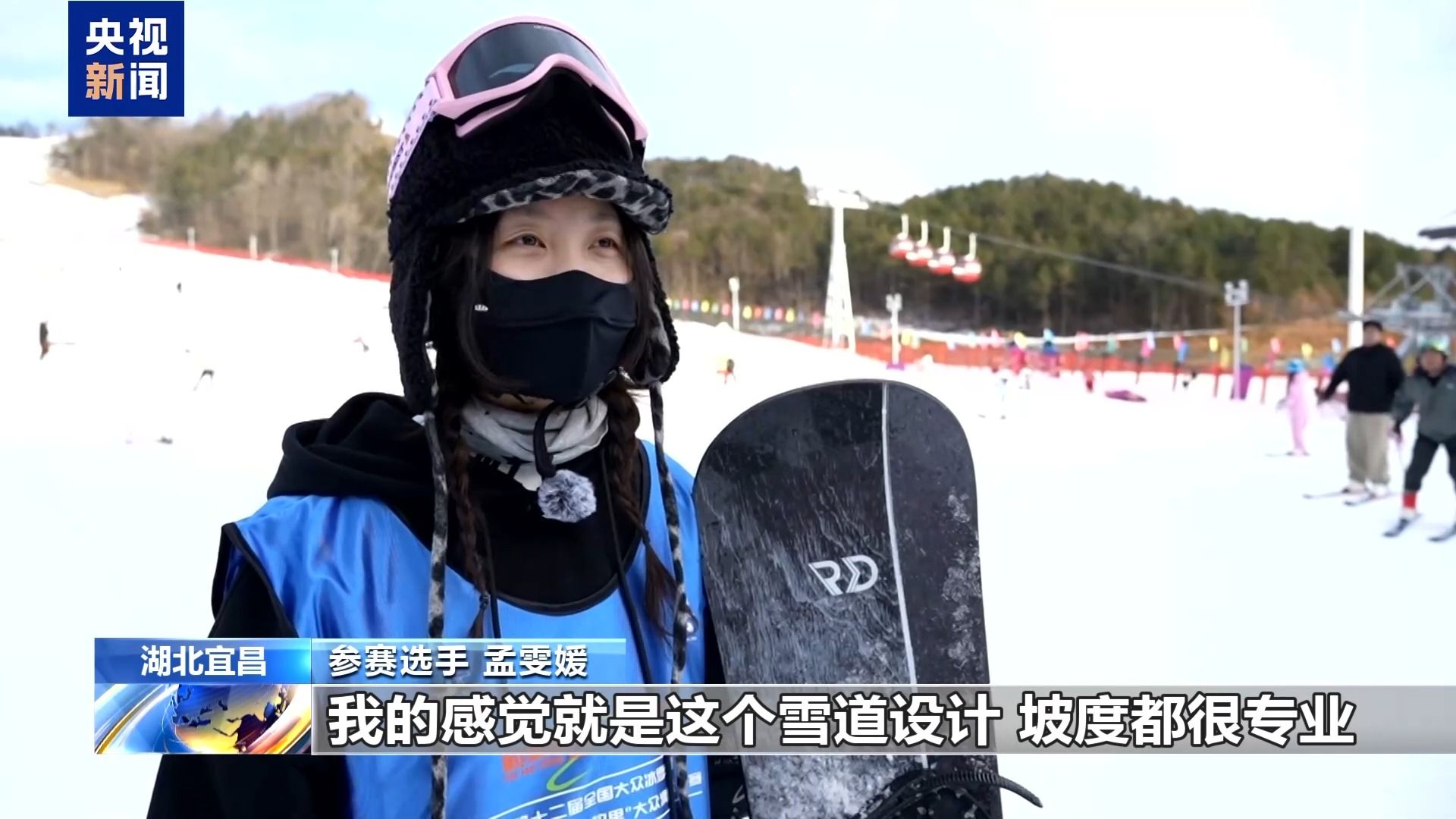参赛选手 孟雯媛:第一次来兴山这个滑雪场,我感觉雪道的设计、坡度都很专业,宽度也很专业。雪质也挺好,比较细腻,不管是来比赛竞技还是体验都很过瘾。
