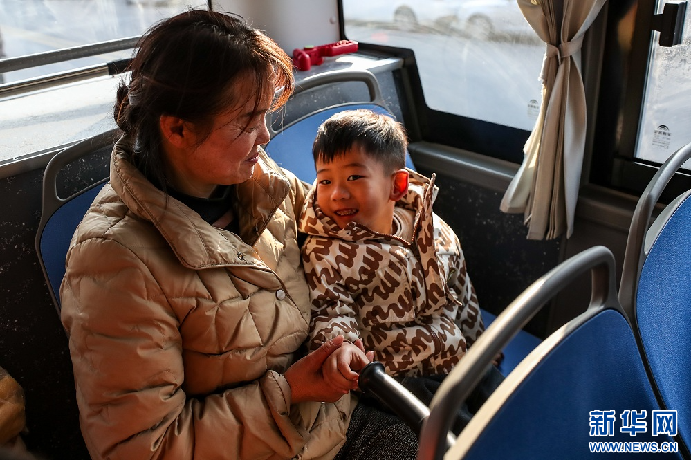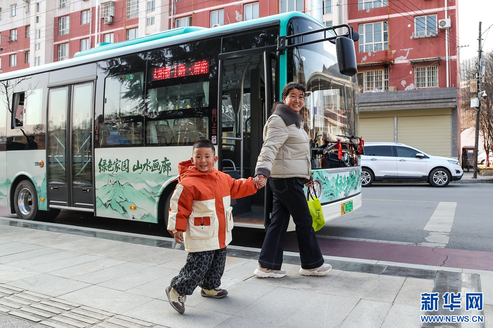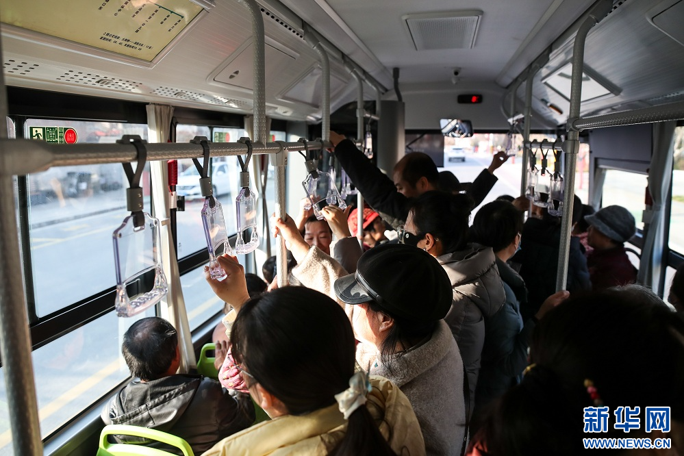 1月17日,群众在甘肃省陇南市两当县乘坐免费公交出行。新华社记者 郎兵兵 摄