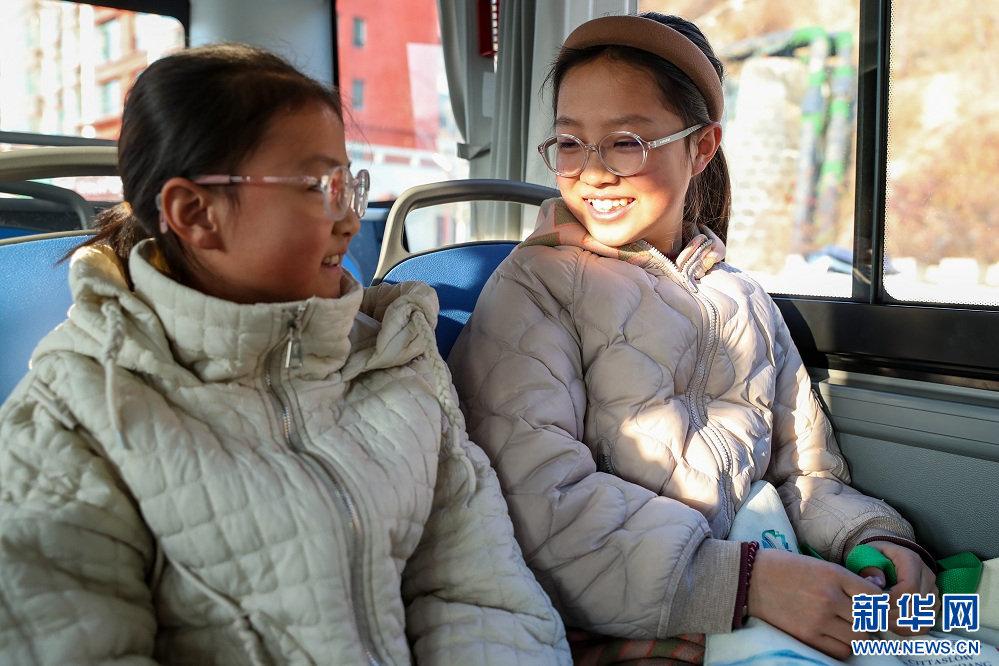 1月17日,在甘肃省陇南市两当县,2名学生乘坐免费公交出行。新华社记者 郎兵兵 摄