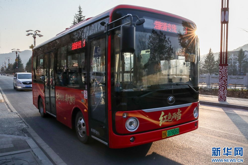 1月18日,一辆免费公交在甘肃省陇南市两当县的街道上。新华社记者 郎兵兵 摄