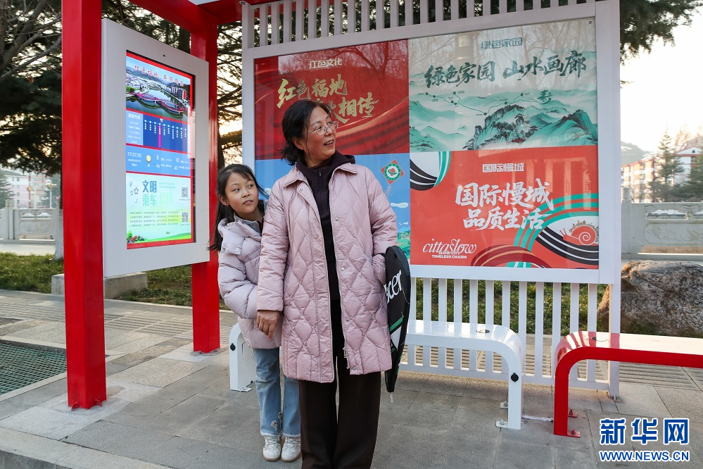 1月17日,群众在甘肃省陇南市两当县一处公交站等待免费公交。新华社记者 郎兵兵 摄