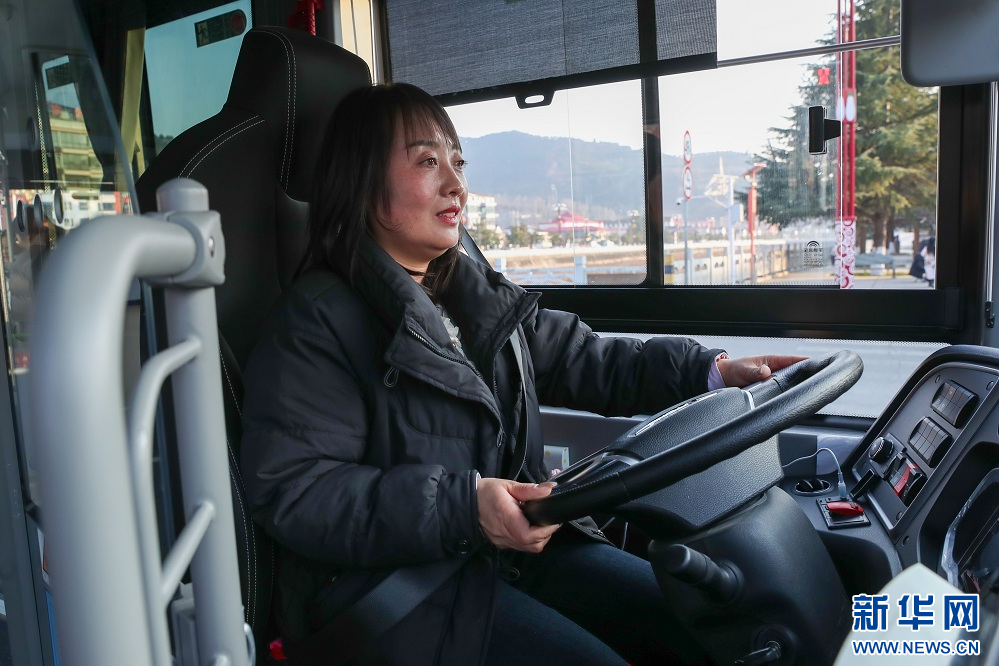 1月17日,一名驾驶员在甘肃省陇南市两当县驾驶免费公交。新华社记者 郎兵兵 摄