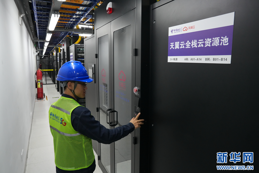 工作人员在中国电信庆阳算力中心机房内巡检。新华网发(于洁 摄)