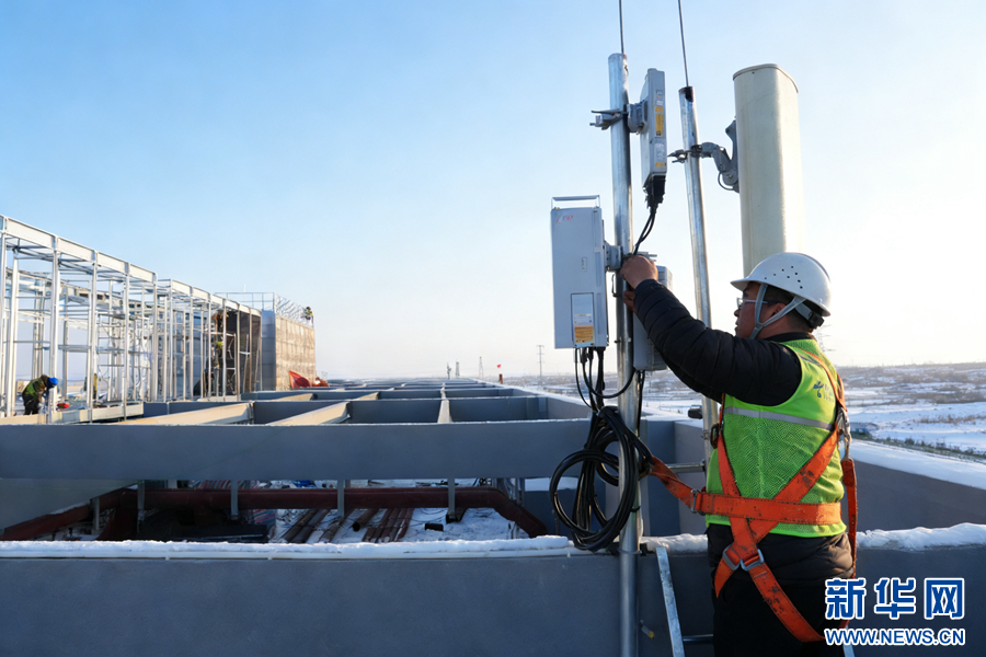 图为工人在中国电信庆阳智能算力中心项目施工现场作业。新华网发(于洁 摄)