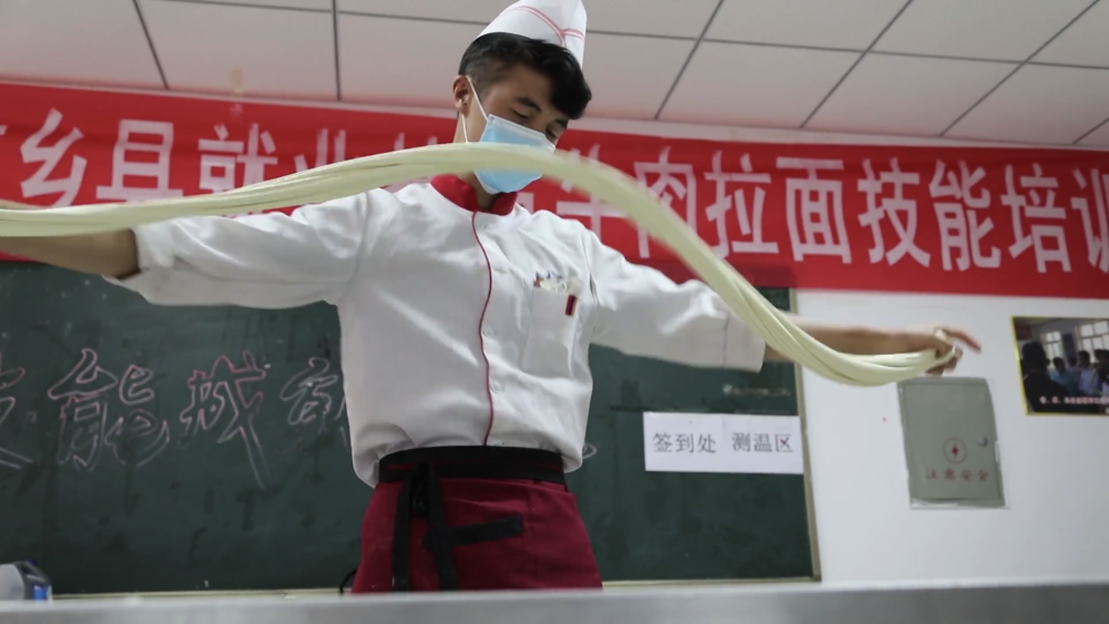 看到消息的马鑫仿佛抓住了一根救命稻草。他报名参加了牛肉拉面培训班。培训班里,拉面老师手把手地教马鑫和面、揉面和拉面。马鑫认真地听,仔细地学,勤快地练,丝毫不敢懈怠。