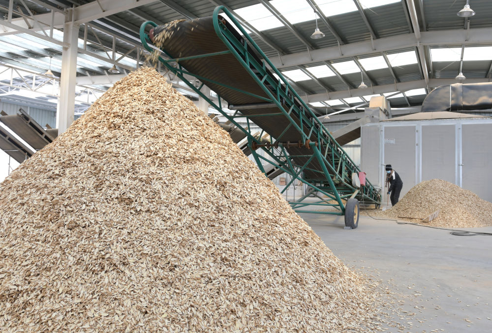 11月28日,在甘肃省永靖县有机黄芪收储加工基地,工人加工黄芪切片。新华社发(史有东 摄)