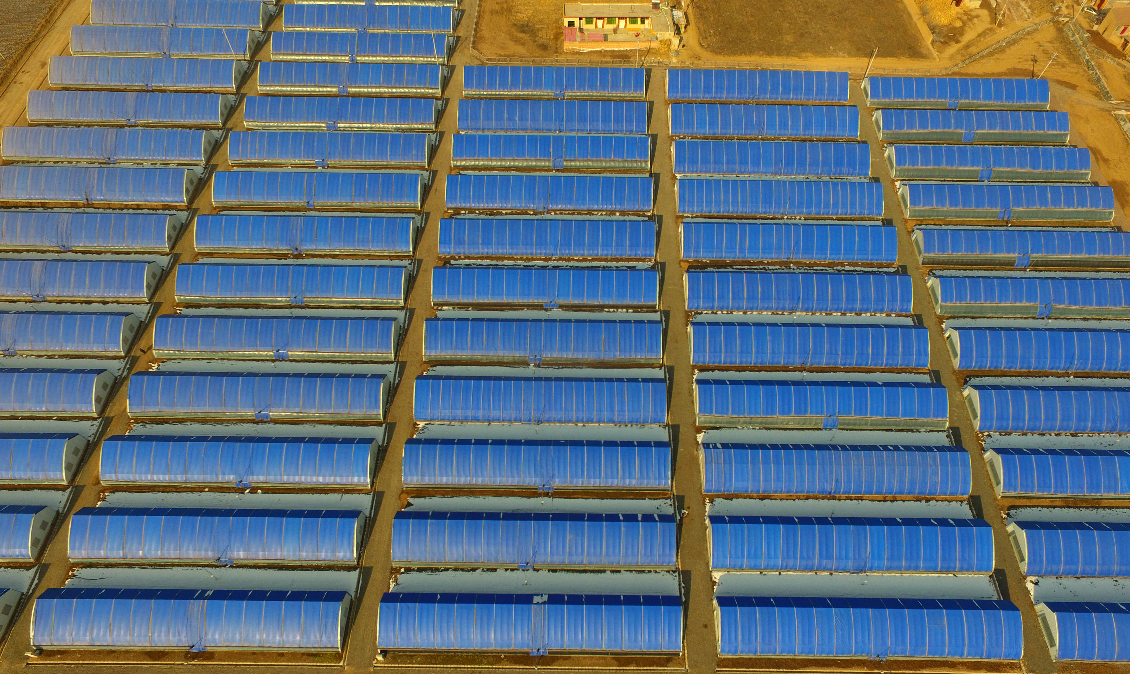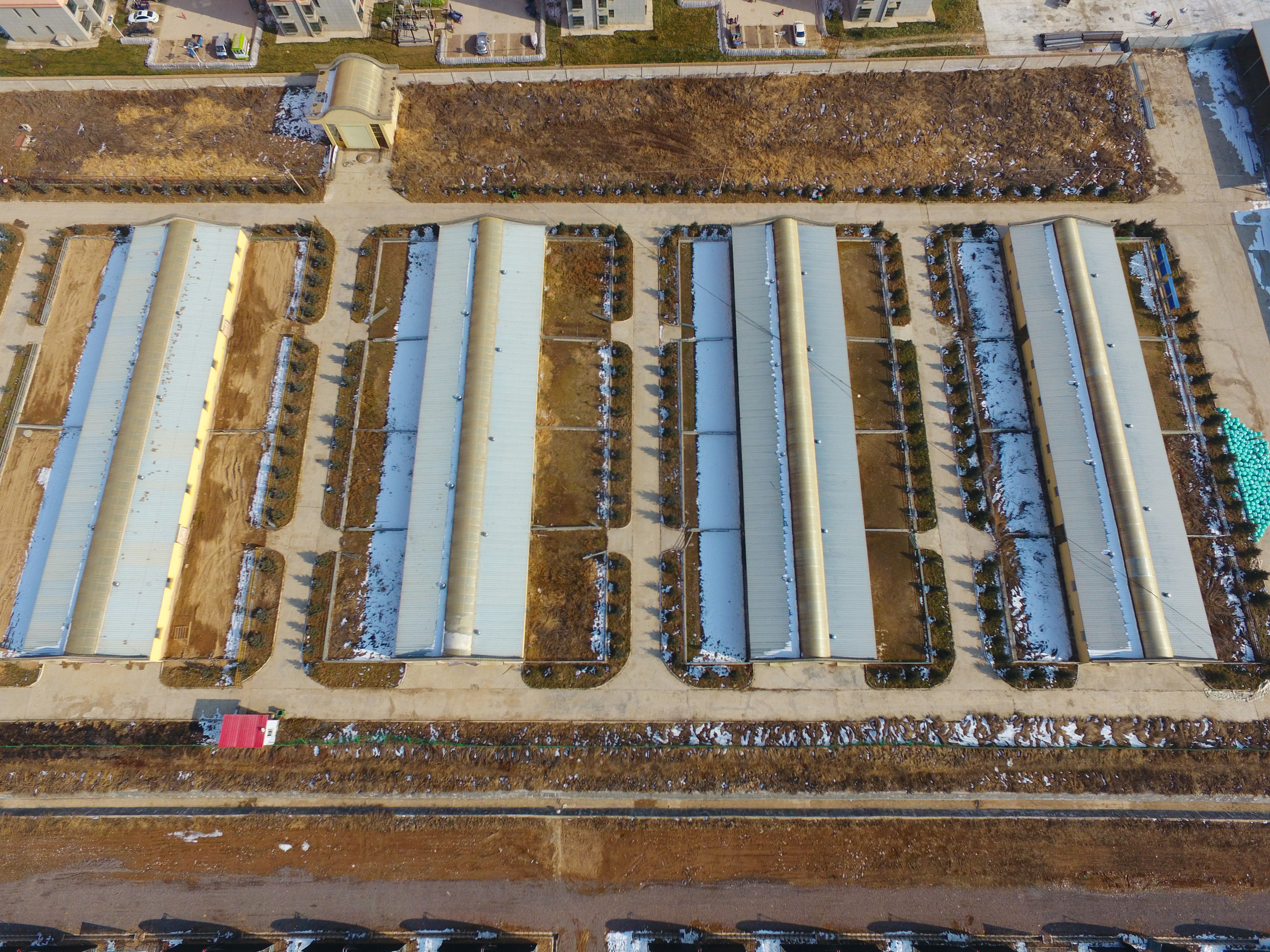 ↑这是12月12日拍摄的东乡族自治县那勒寺易地扶贫搬迁安置点后续产业园的农业设施(无人机照片)。