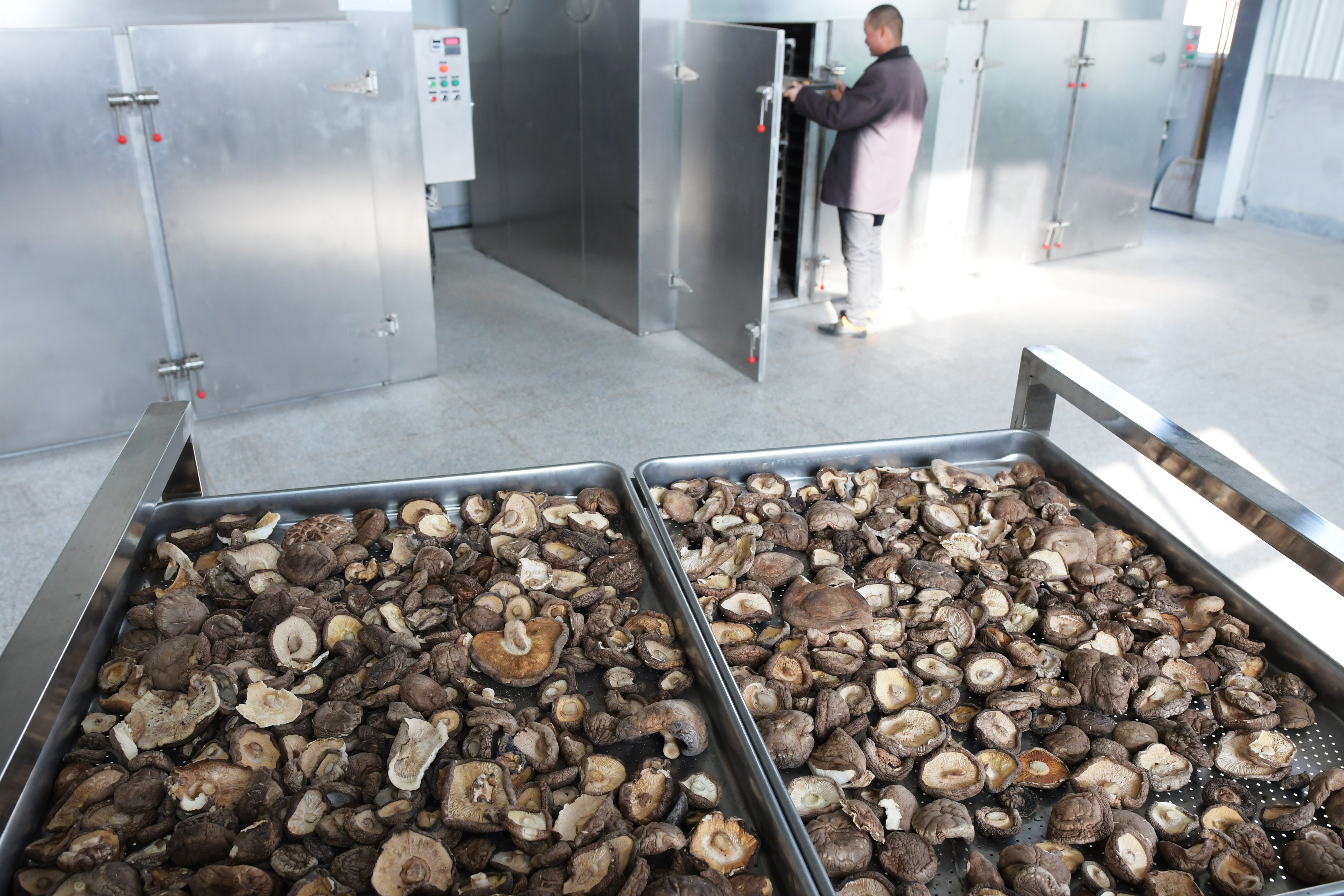 ↑12月12日,工人在东乡族自治县那勒寺易地扶贫搬迁安置点后续产业园里加工香菇。