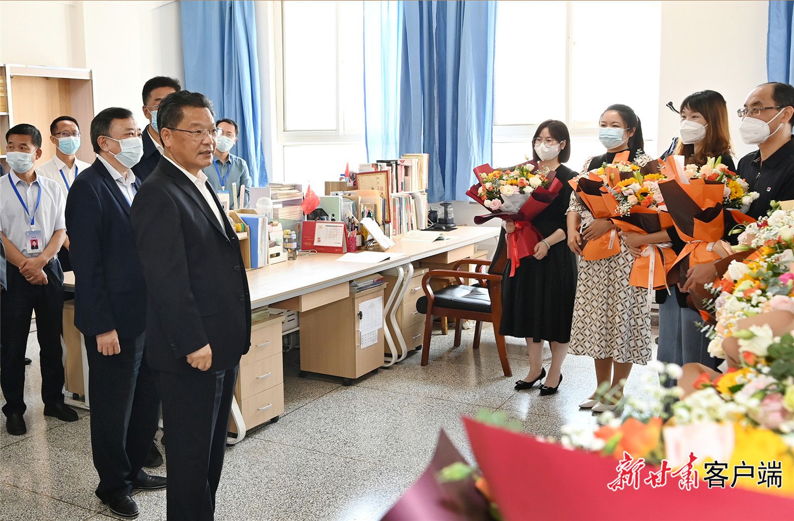 9月9日,省委副书记、省长任振鹤来到兰州新区舟曲中学和兰州市第三十三中学,代表省委、省政府亲切看望慰问教职工代表。新甘肃·甘肃日报记者 盛学卿