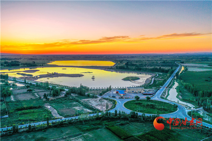 张掖临泽因丹霞而七彩,因黑河而滋润,被誉为河西走廊的“塞上江南”,这里水体湿地与田园交织,村庄在沃野之上星星点点分布,构成一幅美丽的田园画卷。