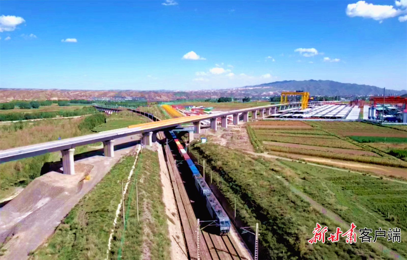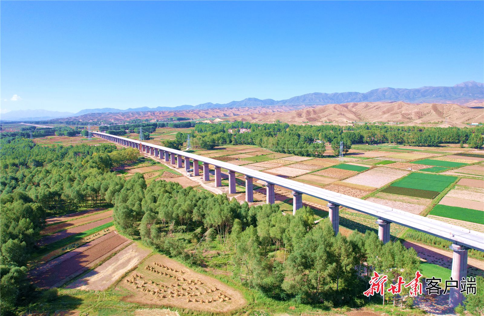 兰张三四线铁路高架桥犹如一条长龙横卧在山川间。新甘肃·甘肃日报记者 金奉乾摄
