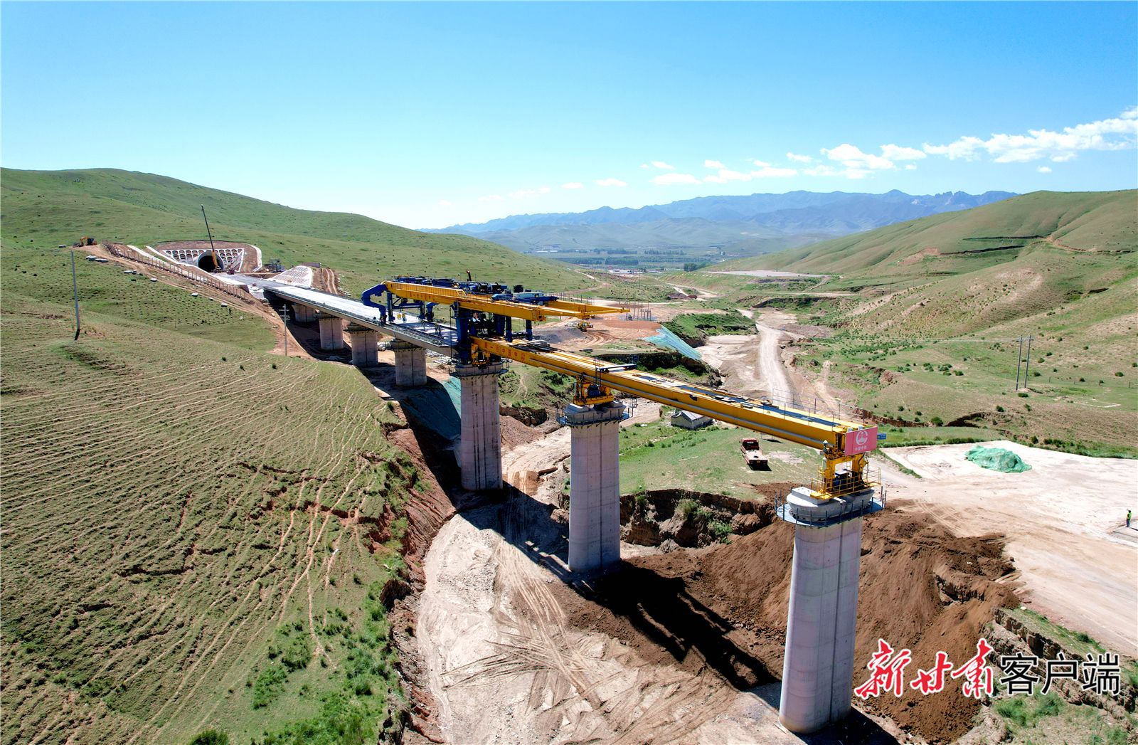 架桥机正在架设铁路桥梁。新甘肃·甘肃日报记者 金奉乾摄