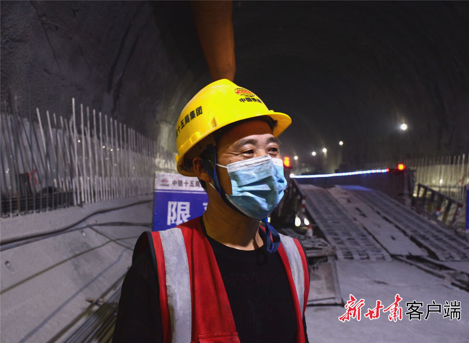 来自湖北省十堰市郧西县的50岁工人张光志已在这里工作了3年,他每天和工友一起绑扎钢筋、安装二衬钢筋,虽然辛苦,心里却充满了工程建设者的自豪。