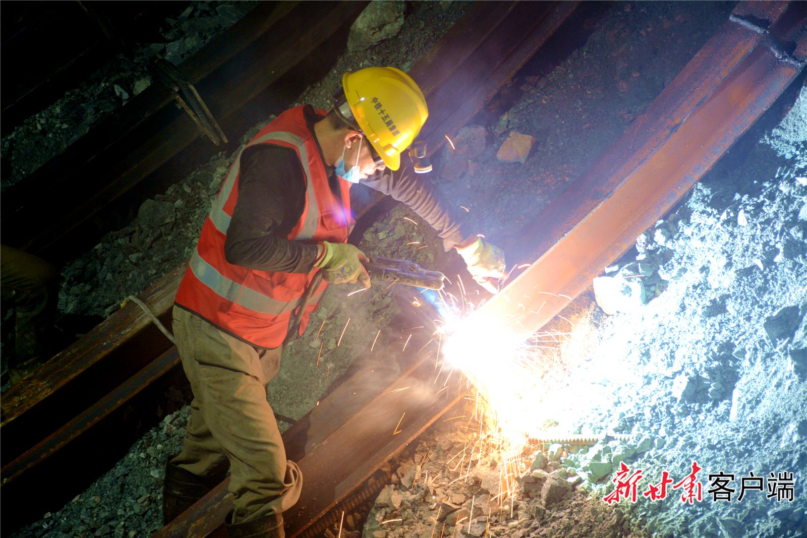 中铁十五局的建设者们在兰张三四线铁路新乌鞘岭隧道内施工。新甘肃·甘肃日报记者 金奉乾摄