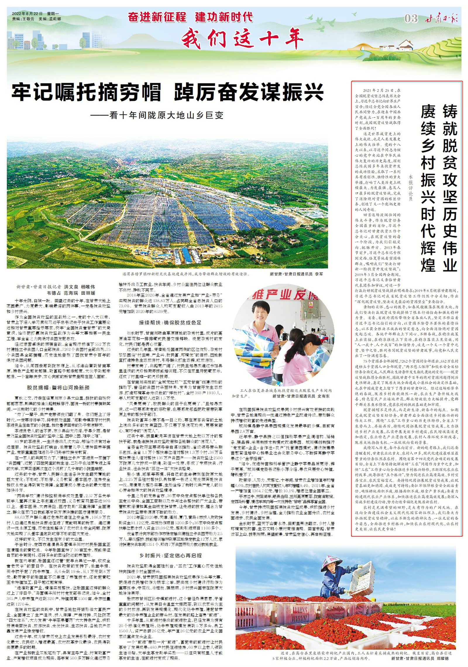 【奋进新征程 建功新时代·我们这十年】牢记嘱托摘穷帽 踔厉奋发谋振兴——看十年间陇原大地山乡巨变