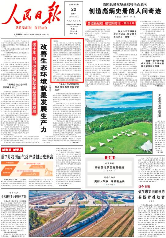 人民日报头版头条关注甘肃:改善生态环境就是发展生产力