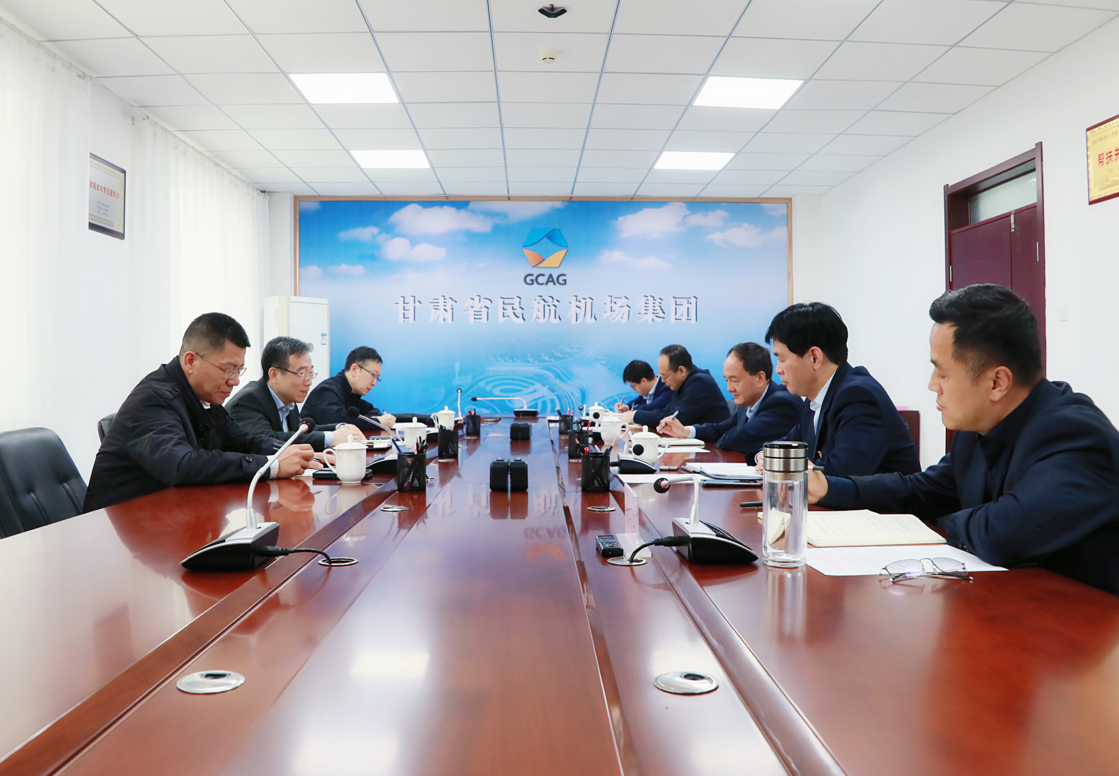 香港中国企业协会副总裁曾燊典,香港立法会议员、招商局港口集团副董事长严刚,香港晴朗货运有限公司董事长黄子文,香港甘肃同乡会秘书长张莉在香港国际机场丽豪航天城酒店举行仪式,欢迎甘肃省民航机场集团董事长王贵玉一行。