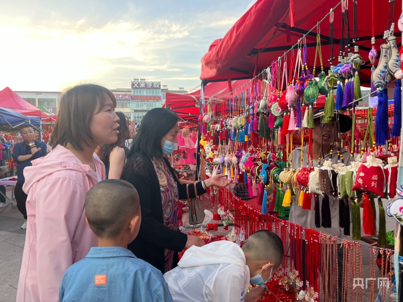 庄浪县文化广场上售卖的荷包香囊(央广网发 庄浪县融媒体中心 供图)