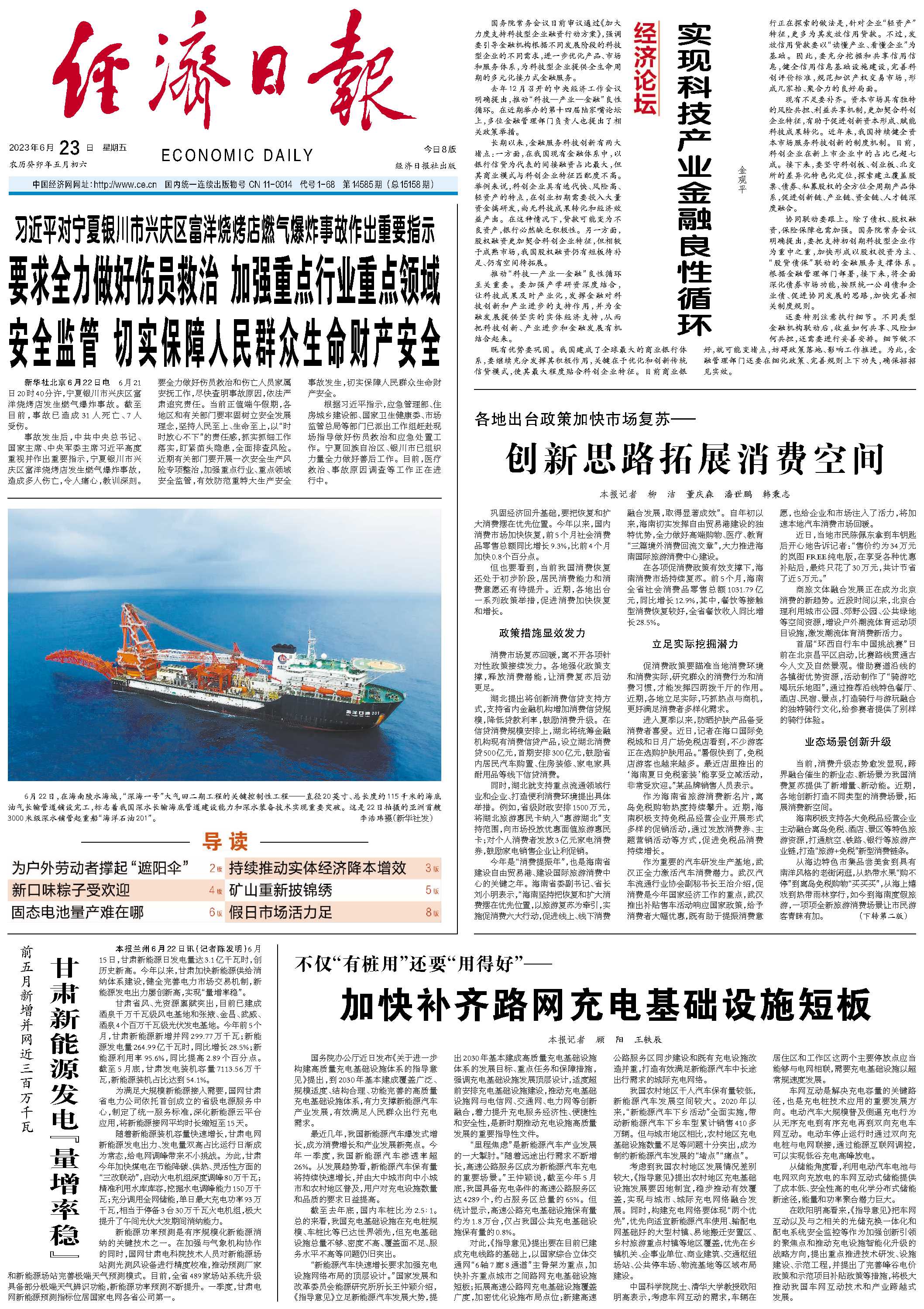 6月15日,甘肃新能源日发电量达3.1亿千瓦时,创历史新高。今年以来,甘肃加快新能源供给消纳体系建设,健全完善电力市场交易机制,新能源发电出力屡创新高,实现“量增率稳”。