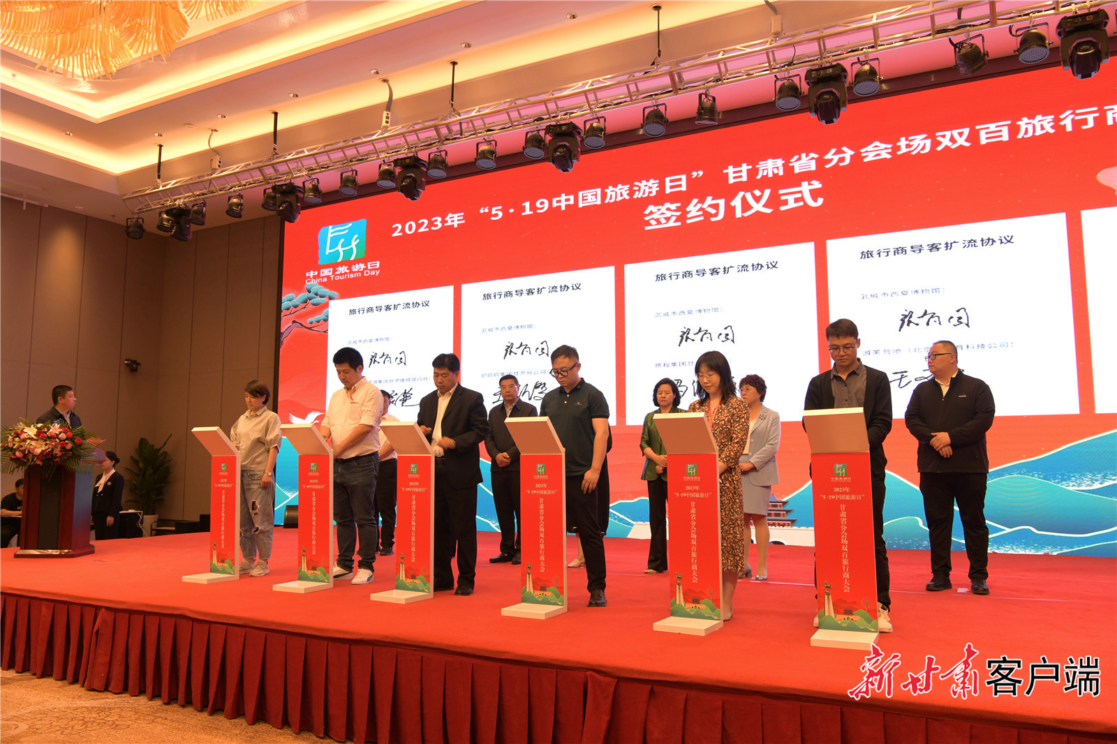 2023年“中国旅游日”甘肃省分会场“双百”旅行商大会签约仪式上,武威市共签约4个项目,总投资额达10.78亿元。新甘肃·甘肃日报记者 金奉乾摄