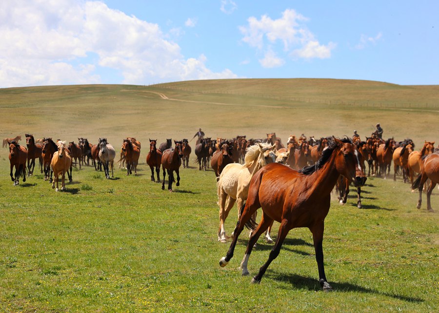 甘肃山丹:骏马奔腾 草原欢歌