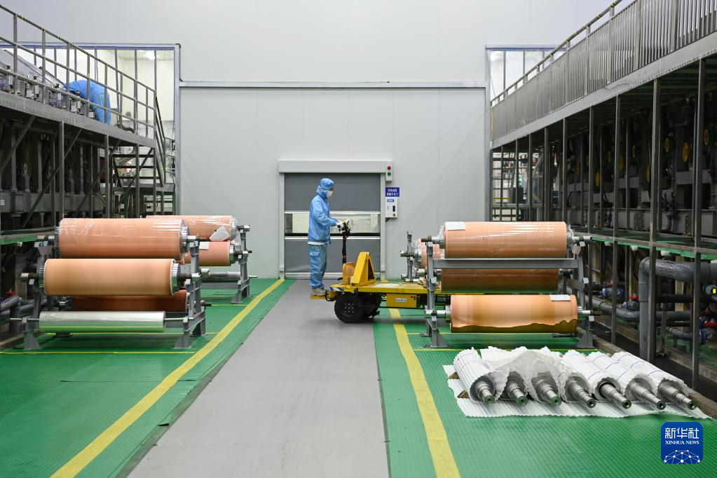 6月27日,工人在金川集团铜业有限公司年产3万吨新能源电子材料铜箔项目生产车间作业。新华社记者 范培珅 摄