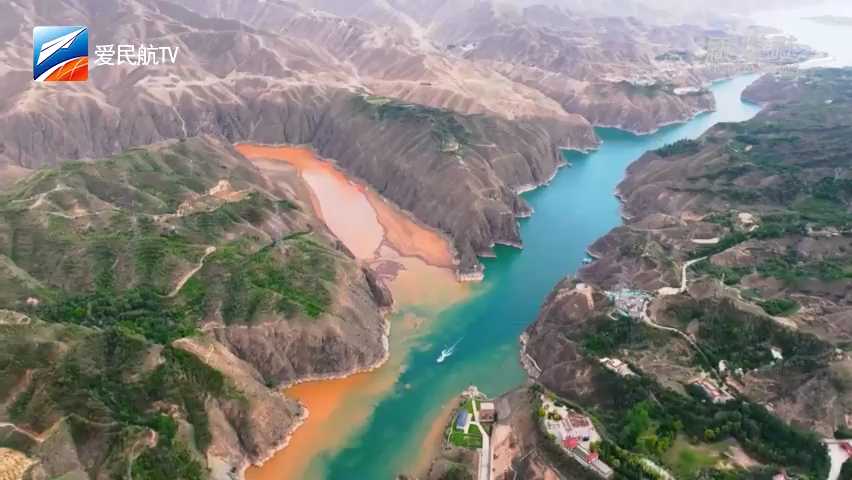 在位于甘肃省临夏回族自治州永靖县的刘家峡水库库区,黄河和洮河两河交汇。夏日,一清一浊的河水在此汇聚交融,形成了一幅旖旎的青绿山水画卷。
