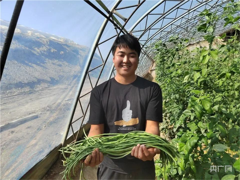 石勤红展示自己种植的蔬菜(央广网发 玉门市委宣传部 供图)