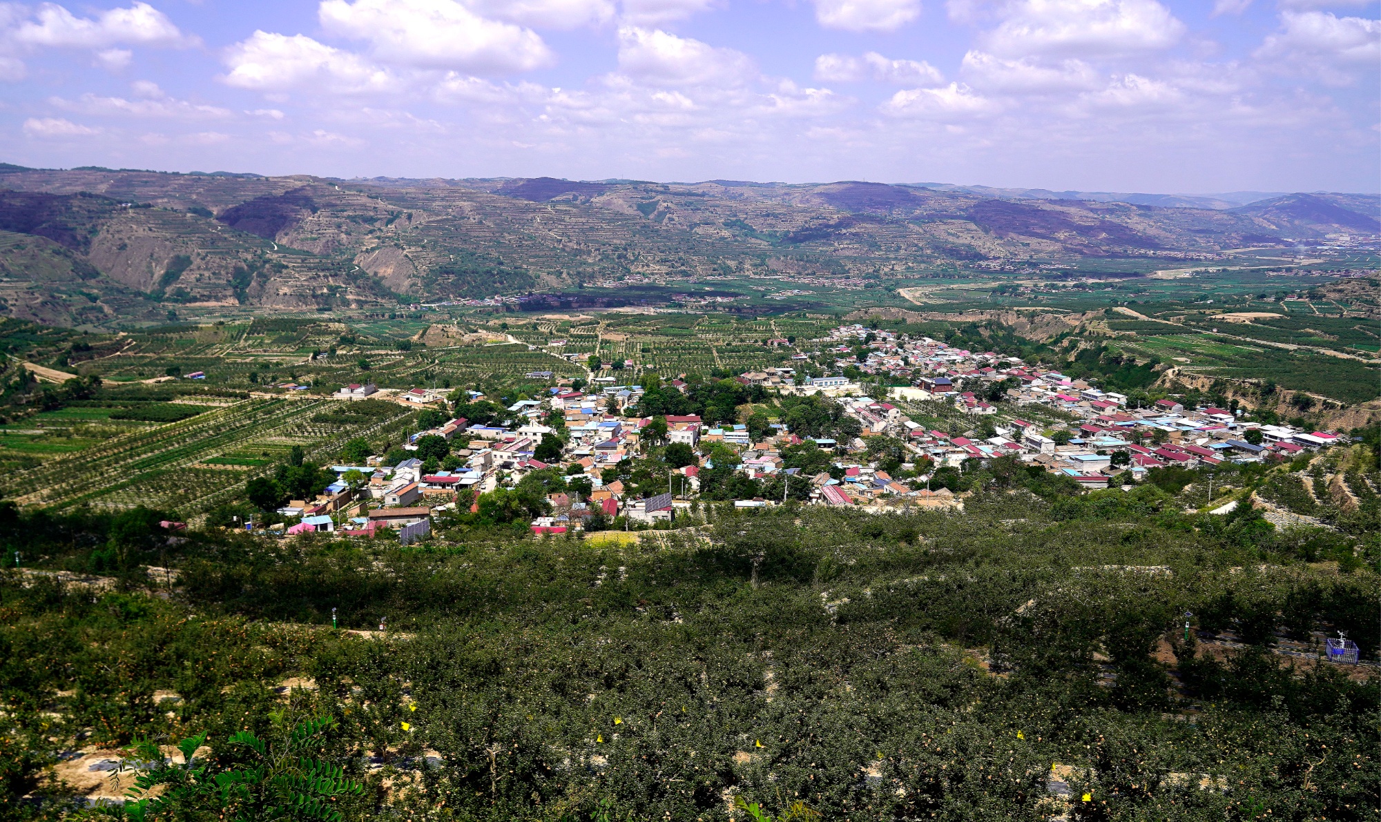 果园映衬下的村庄(静宁县融媒体中心 供图)