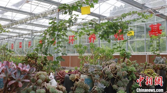 在成县陈院镇梁楼村渔乐种养殖农民专业合作社的“鱼菜共生”循环养殖基地,1300平方米的大棚内,6个方形鱼池并排罗列,养殖池里的中华鲟、黄辣丁、鲈鱼活力十足;一旁的长方形水泥池内定植的黄瓜、西红柿、生菜等果蔬郁郁葱葱,长势喜人。
