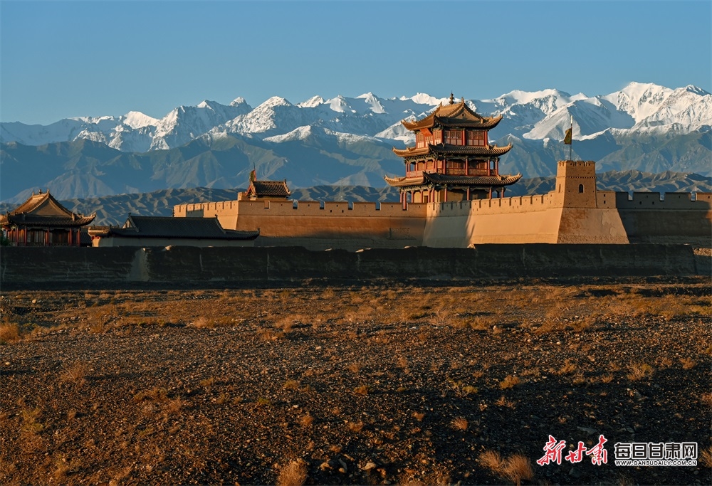 7月3日,受降水影响,祁连山顶被白雪覆盖,雨后凉爽的空气扫尽了盛夏的闷热,也将城市冲刷得愈加翠绿。在皑皑白雪的映衬下,嘉峪关关城显得更加雄伟、艳丽,东湖生态旅游景区花红柳绿、碧波荡漾,鸟儿在空中飞舞,市民在湖边快乐健身,将戈壁深处的嘉峪关市装扮成一幅灵动的水彩画。