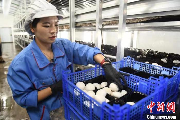 近日,记者实地走访该基地看到,在大棚里,工作人员用工具铲下个头饱满的双孢菇,放入盒中一一摆放好。不久后,这些鲜菇将销往庆阳周边及西安各大超市。