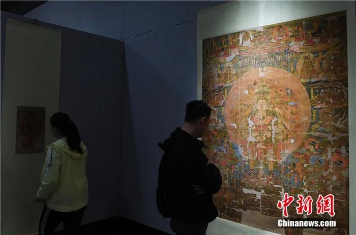 2019年4月,90余幅敦煌莫高窟藏经洞流失海外书画文物复制品在兰州西北师范大学展出吸引民众。杨艳敏 摄