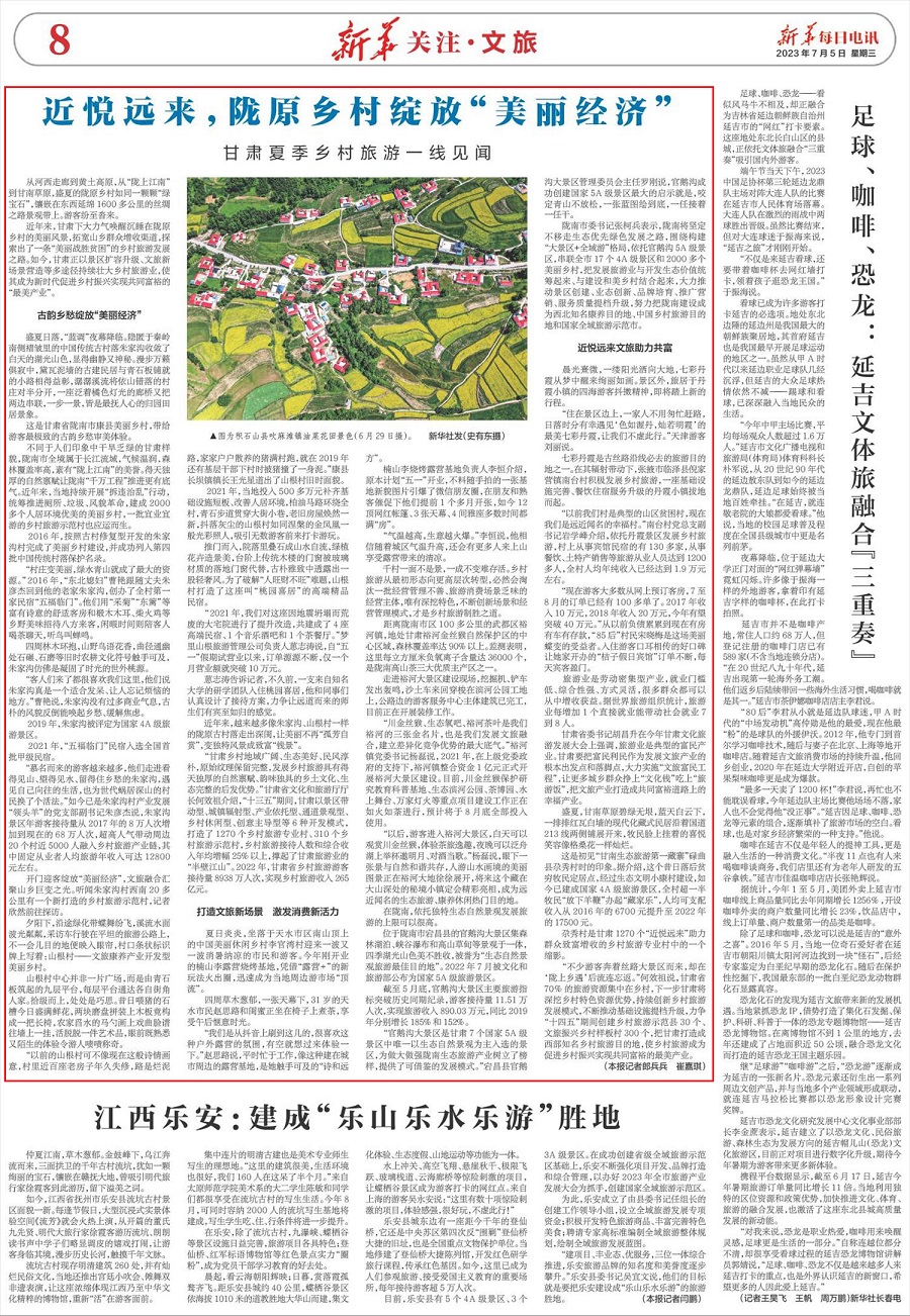 近年来,甘肃下大力气唤醒沉睡在陇原乡村的美丽风景,拓宽山乡群众增收渠道,探索出了一条“美丽战胜贫困”的乡村旅游发展之路。如今,甘肃正以景区扩容升级、文旅新场景营造等多途径持续壮大乡村旅游业,使其成为新时代促进乡村振兴实现共同富裕的“最美产业”。