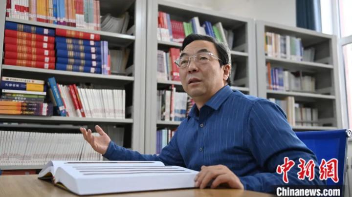田河教授接受中新社专访,对《仪礼》简进行解读。李亚龙 摄