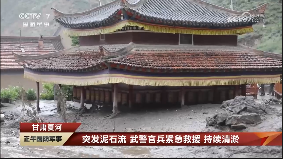 甘肃夏河 突发泥石流 武警官兵紧急救援 持续清淤