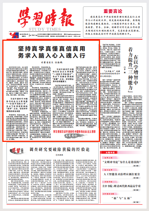 习近平新时代中国特色社会主义思想是“一支蓄满力的利箭”,务必下足学以致用的“真用”之功,奋力开创发展的时代新篇