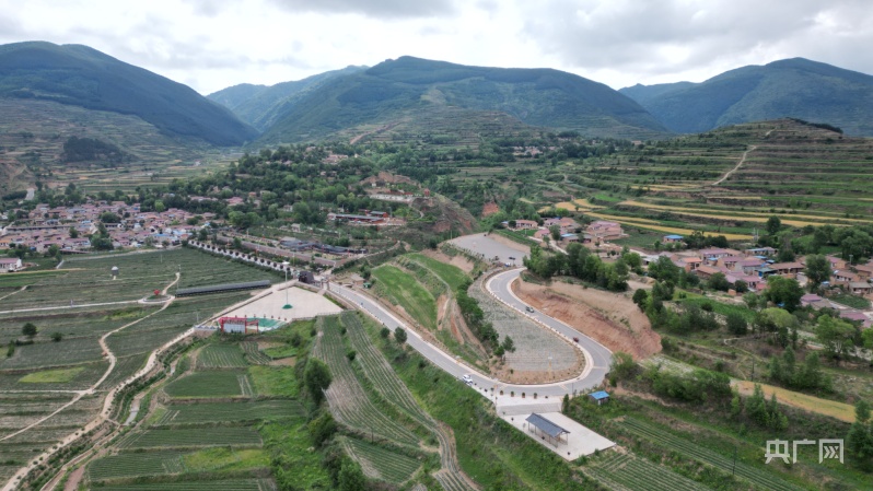 蜿蜒的公路与村景相得益彰(央广网发 庄浪县融媒体中心 供图)