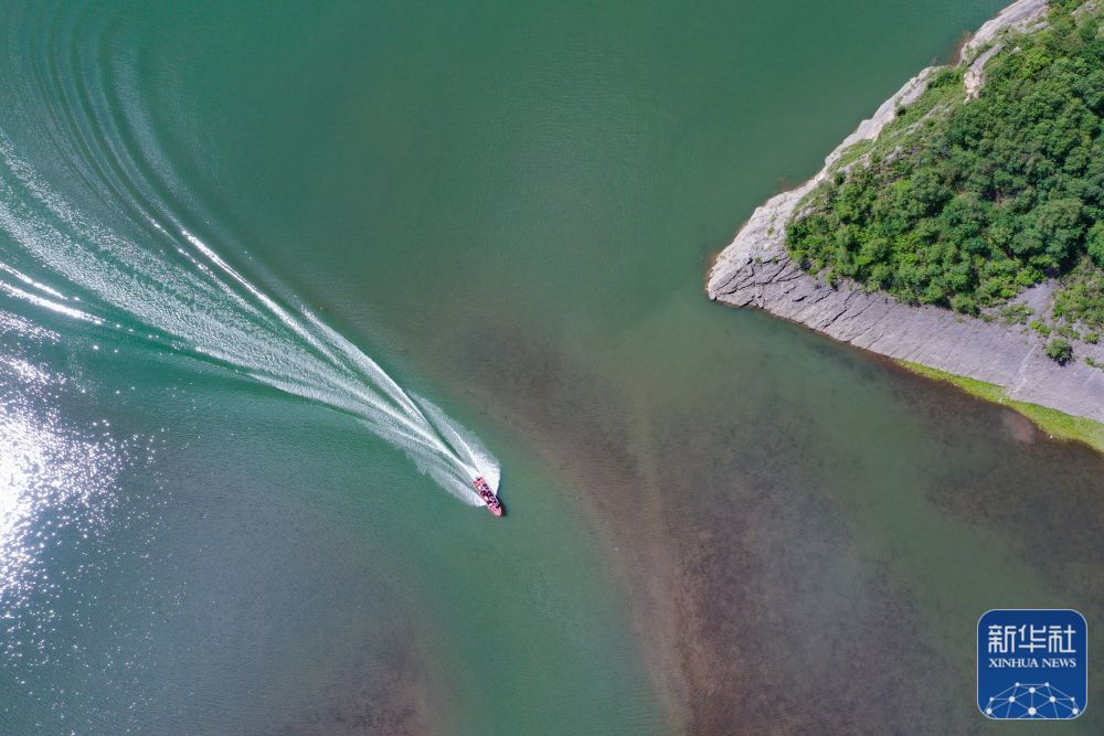这是7月15日拍摄的冶力关旅游区“赤壁幽谷”丹霞地貌美丽风光(无人机照片)。新华社记者 郎兵兵 摄